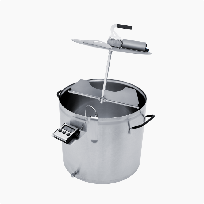 2 в 1: сыроварня и пастеризатор. Сыроварня работает по принципу «водяной бани», что позволяет бережно и равномерно пастеризовать молоко и сразу же его охладить до нужных вам температур для внесения заквасочных культур.
